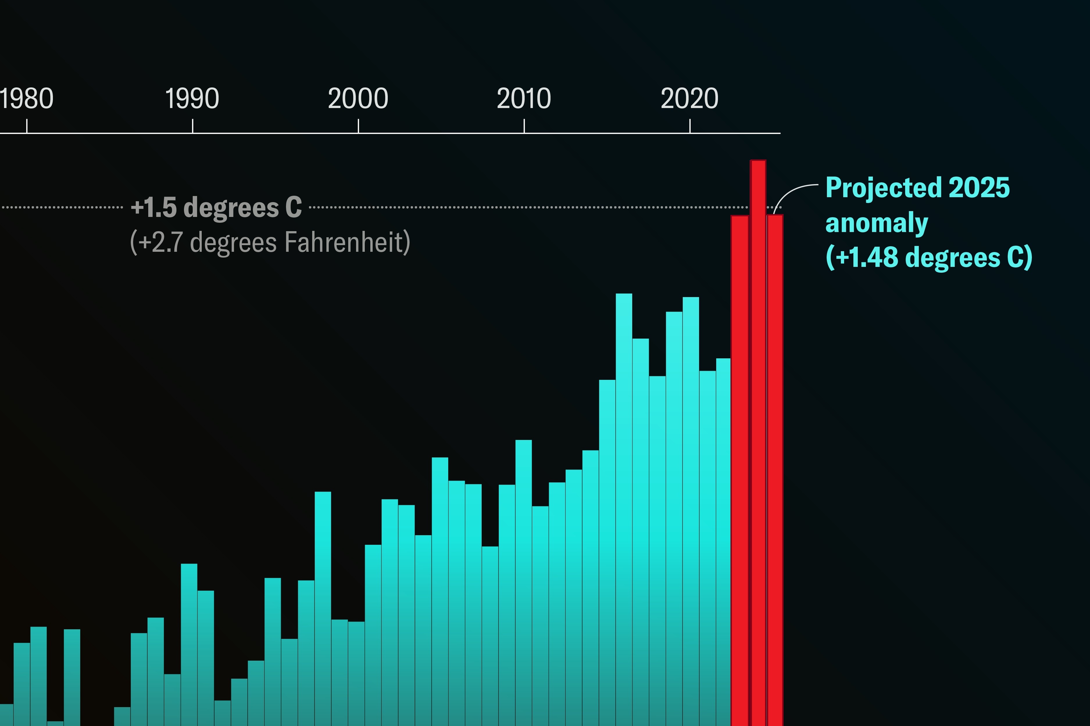 Graphic by Scientific American, data from Copernicus Climate Change Service (C3S/ECMWF), via https://www.scientificamerican.com/article/2025-likely-to-tie-for-second-hottest-year-on-record/